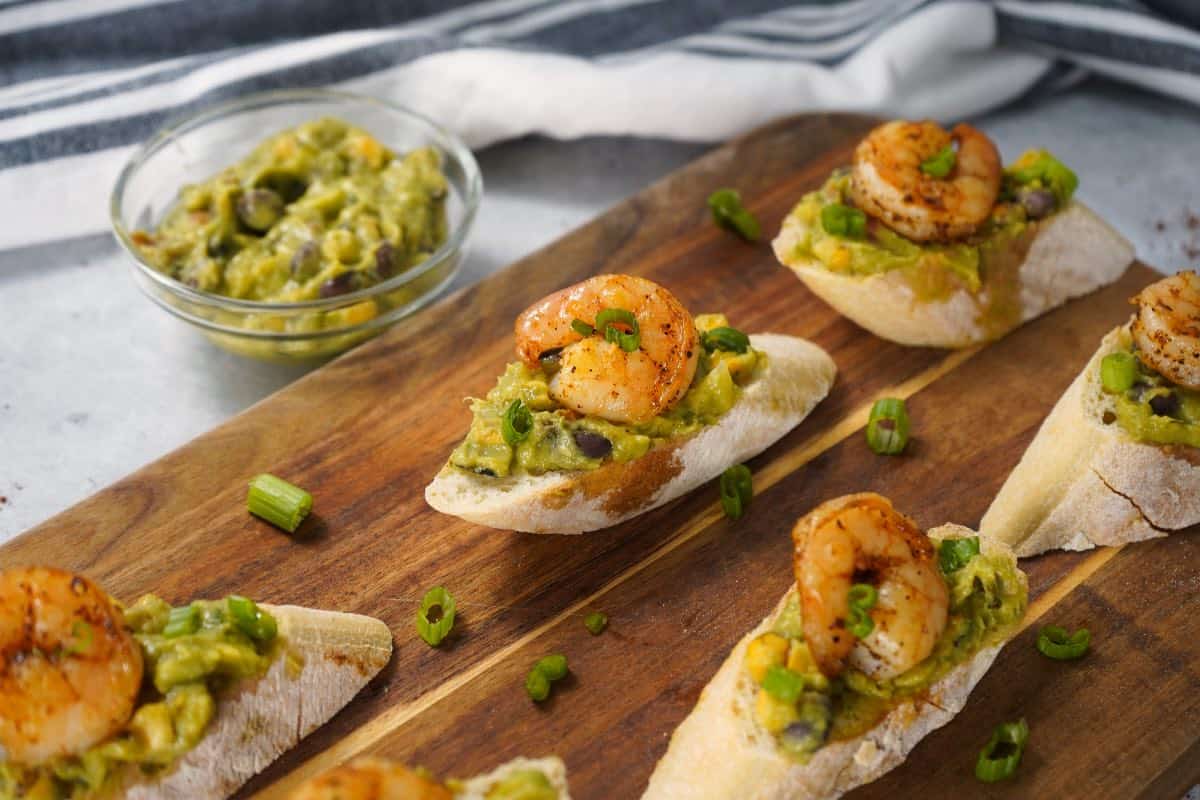 | 🍤 Olive Oil – Just a little to cook the shrimp evenly and prevent sticking. 🍤 Shrimp – I like using 8-10 raw, peeled, and deveined shrimp (tails off), defrosted. Quick, easy, and perfect every time. if you want to use cooked shrimp, still toss in the pan to warm them up with the spices. 🍤 Salt & Pepper – Simple seasoning to bring out all the flavors. 🍤 Chili Powder – Gives your shrimp a little kick. Adjust to taste, because we all handle spice differently! 🍤 French Baguette – Slice it diagonally and toast until golden and crisp. This makes all the difference. 🍤 Southwestern Style Guacamole – Creamy, flavorful, and basically a must-have for this recipe. 🍤 Green Onion – Chopped and sprinkled on top for color and a little freshness. |