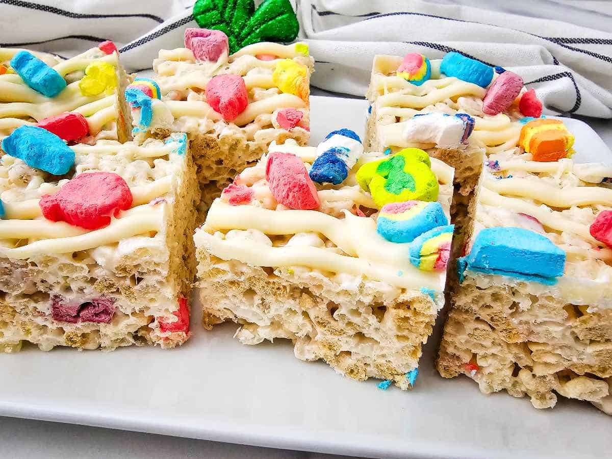 If you’re looking for a fun, no-bake treat that comes together fast, these Lucky Charm Rice Krispies are it. They’re colorful, nostalgic, and perfect for all of your Saint Patrick’s Day celebrations.
